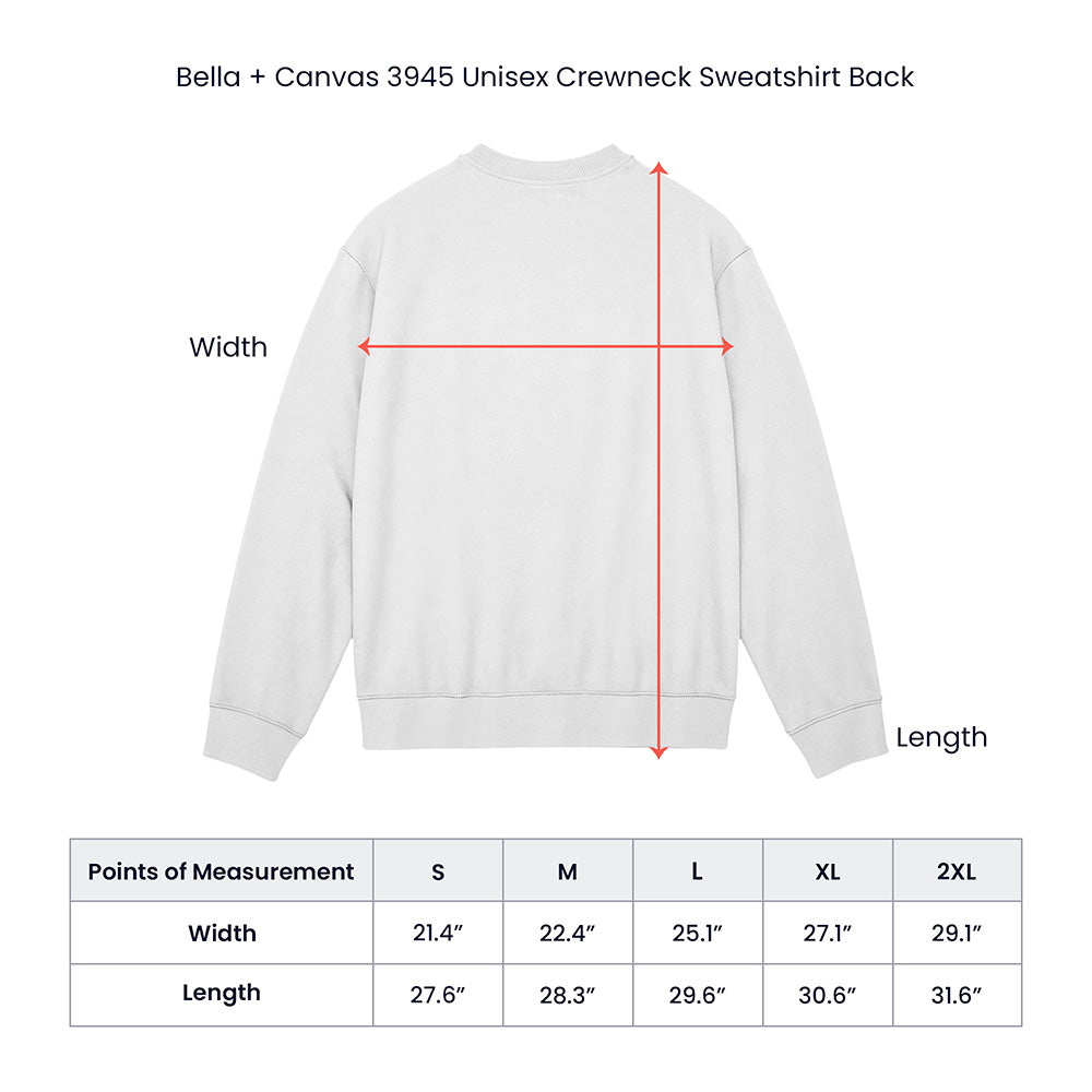 - Style: Bella + Canvas 3945 Unisex crewneck, side seamed, unisex fit, ribbed cuffs and waistband